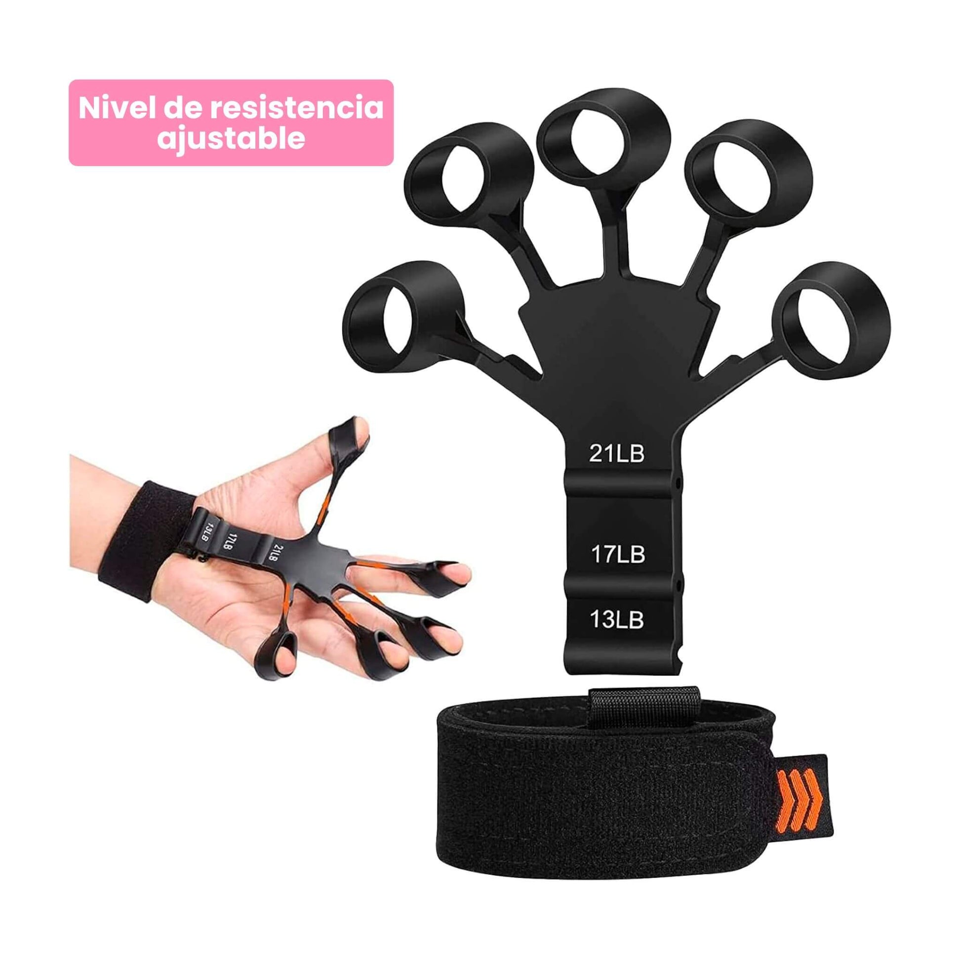 - Incluye: Ejercitador de dedos y correas ajustables